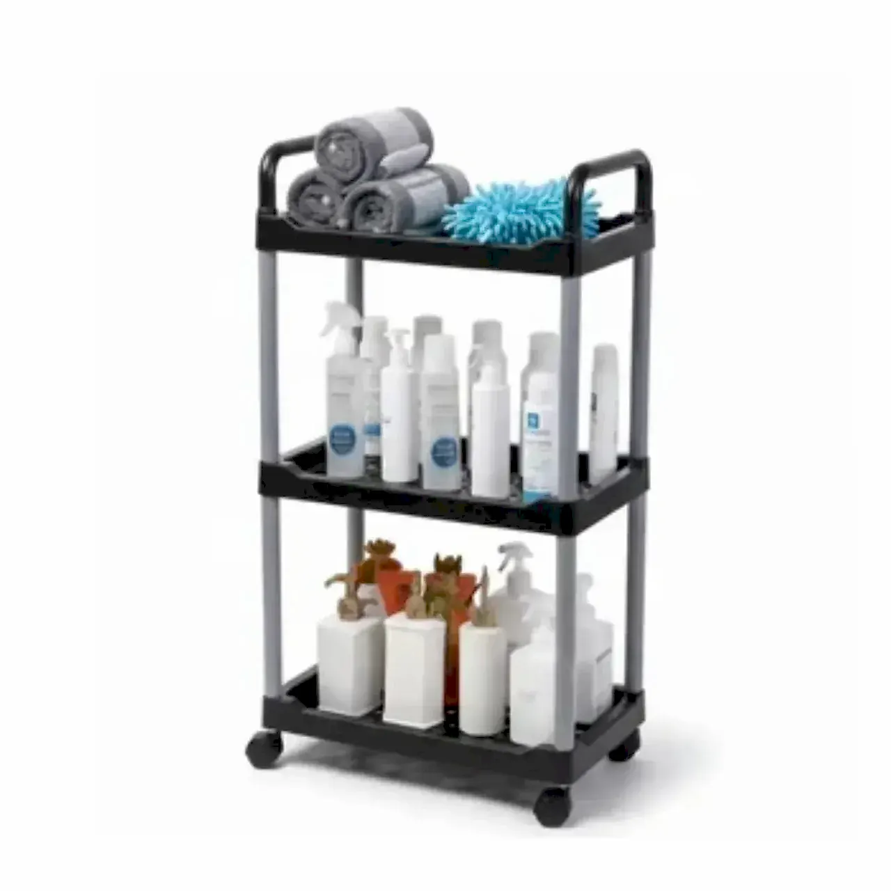 3 Katlı Tekerlekli Banyo Ev Çok Amaçlı Raf Siyah