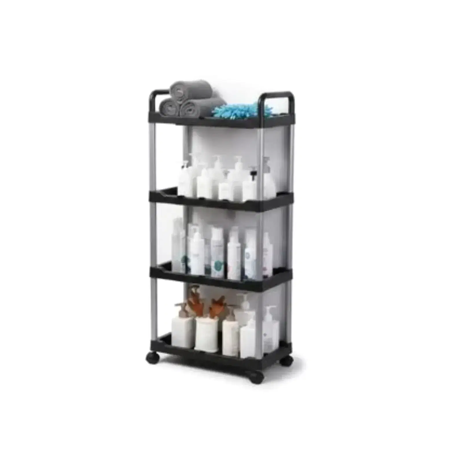 4 Katlı Tekerlekli Banyo Ev Çok Amaçlı Raf Siyah