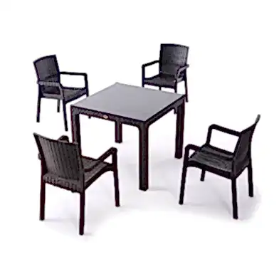 90x90 Cm 4 Vector Sandalyeli Camlı Masa Seti Kahve