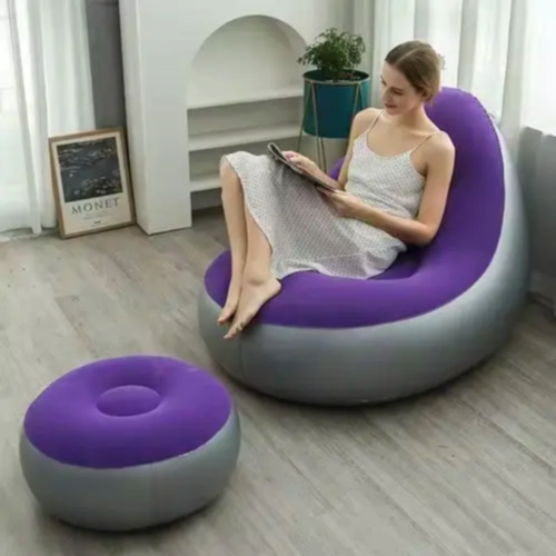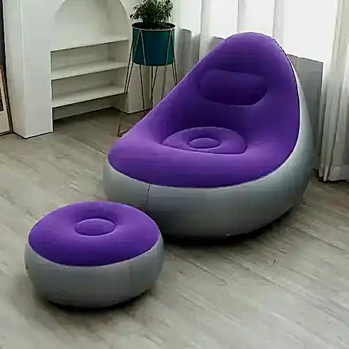Dahili Pompalı Tabureli Yuvarlak Şişme Koltuk Menekşe
