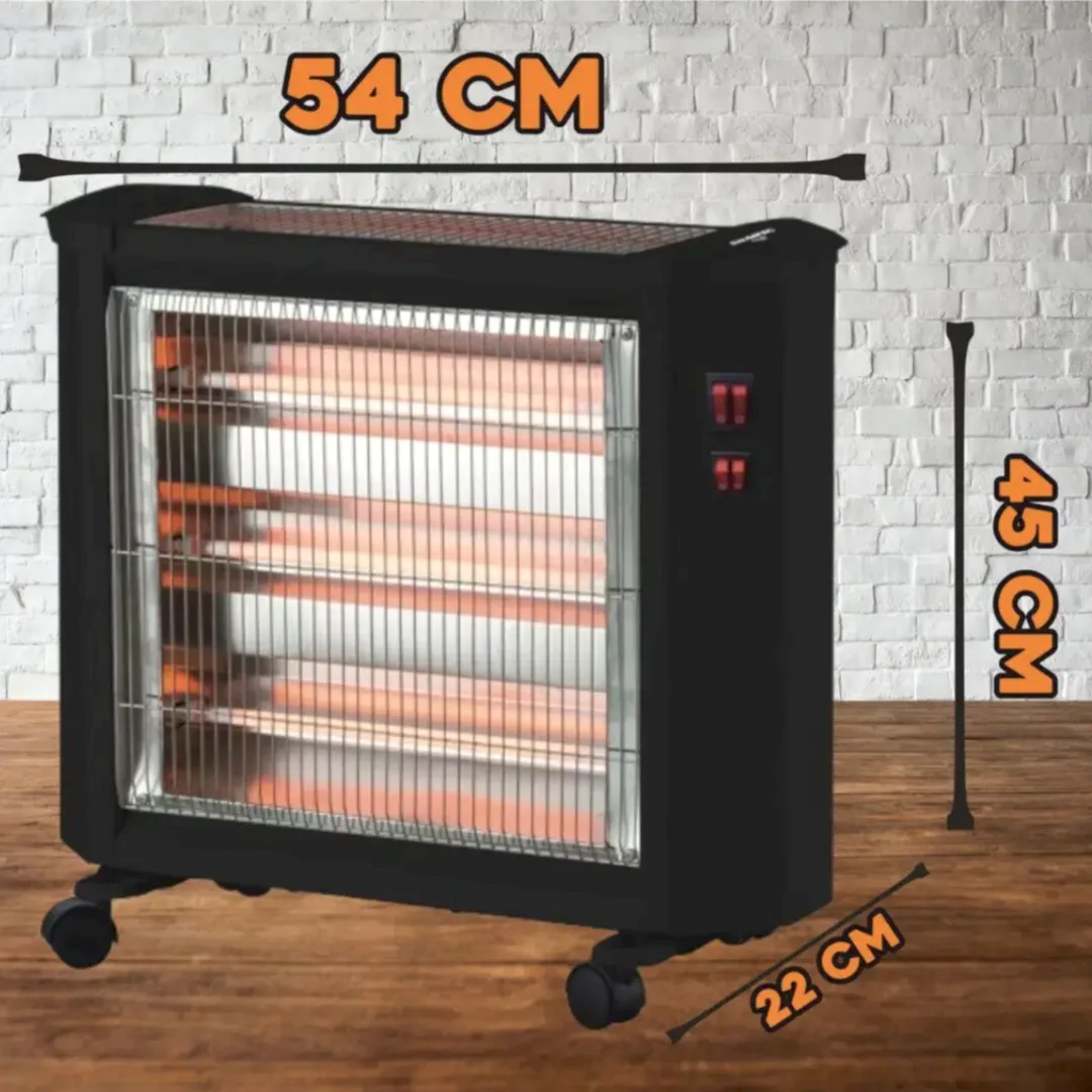 • 4 adet kuvars tüp: İçerisinde bulunan 4 adet kuvars tüp sayesinde yüksek kalitede ısı yayar ve ısıyı odaya eşit şekilde dağıtır.