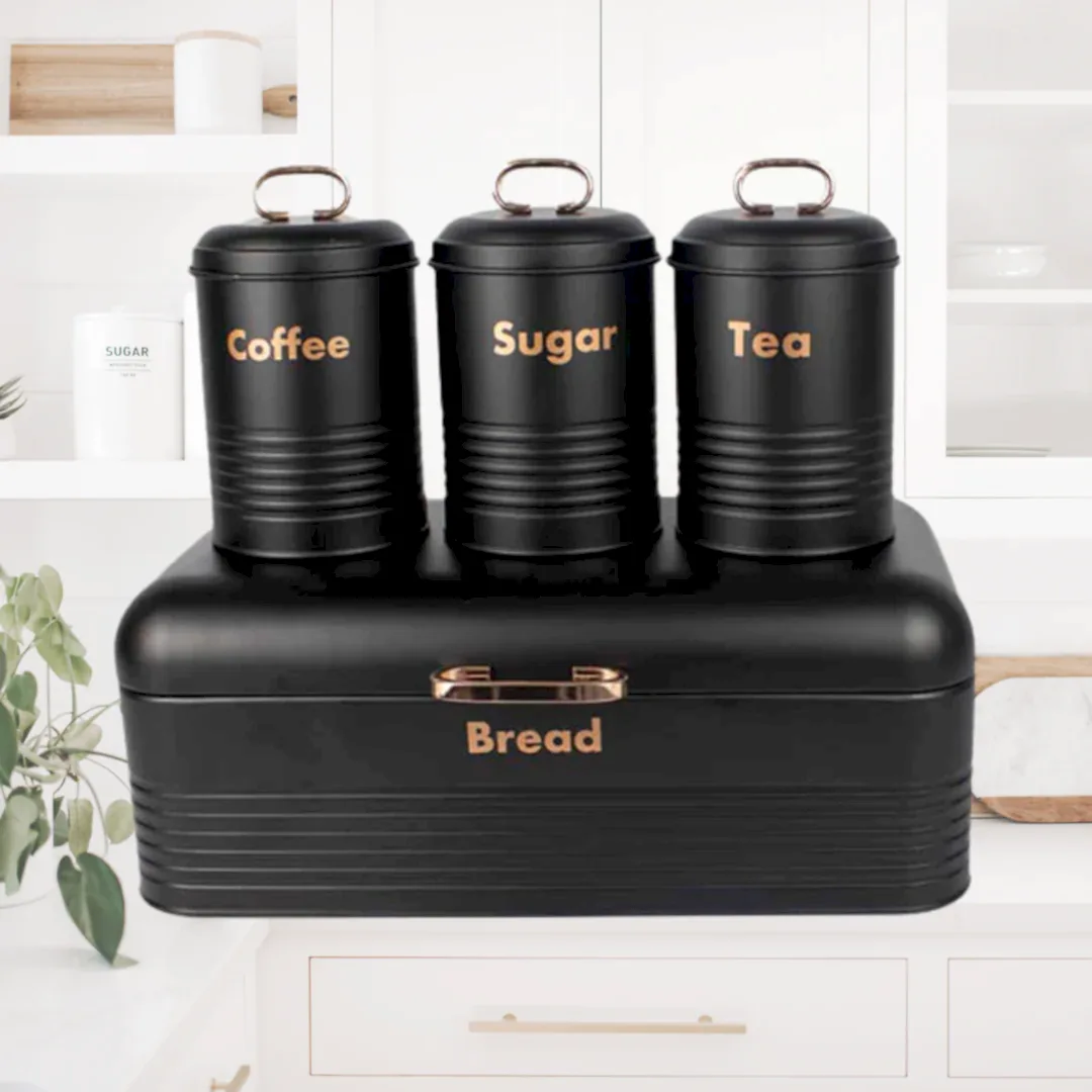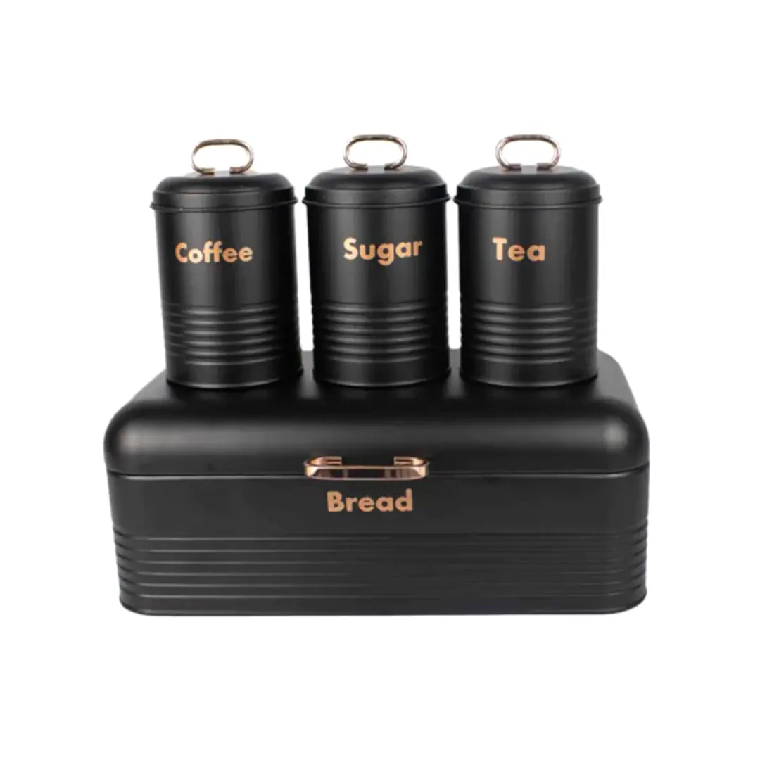 Metal Ekmeklik ve Kahvelik Şekerlik Seti Siyah Bronz
