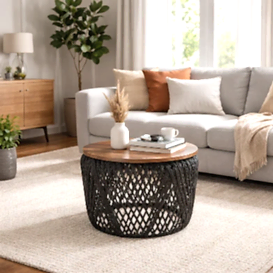 Siyah Halat Örme Sehpa 55x55x46 Cm