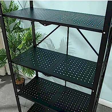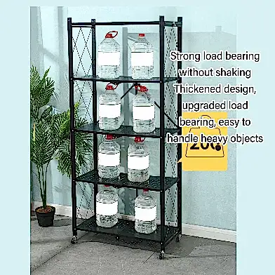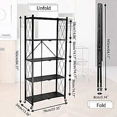 Tekerlekli Katlanabilir 5 Katlı Siyah Metal Raf 155x70x30 Cm