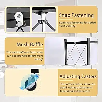 Bu, tekerlekli, katlanabilir metal bir raf ünitesidir. Genellikle mutfak, garaj, kiler, ofis veya yatak odası gibi çeşitli alanlarda ek depolama alanı sağlamak için kullanılır.